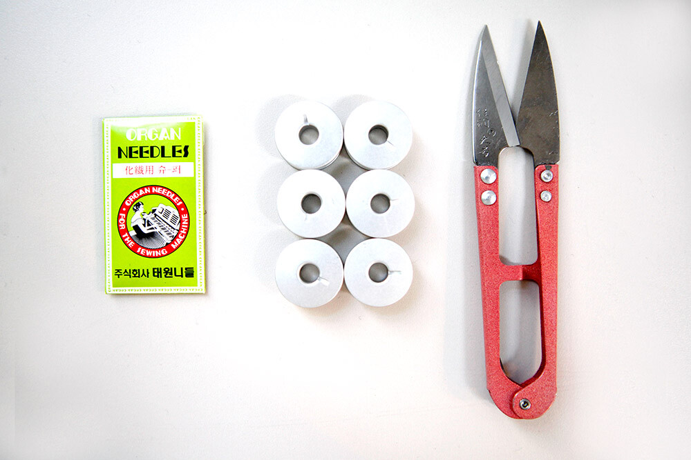 바늘, 보빈, 쪽가위를 사은품으로 드립니다.